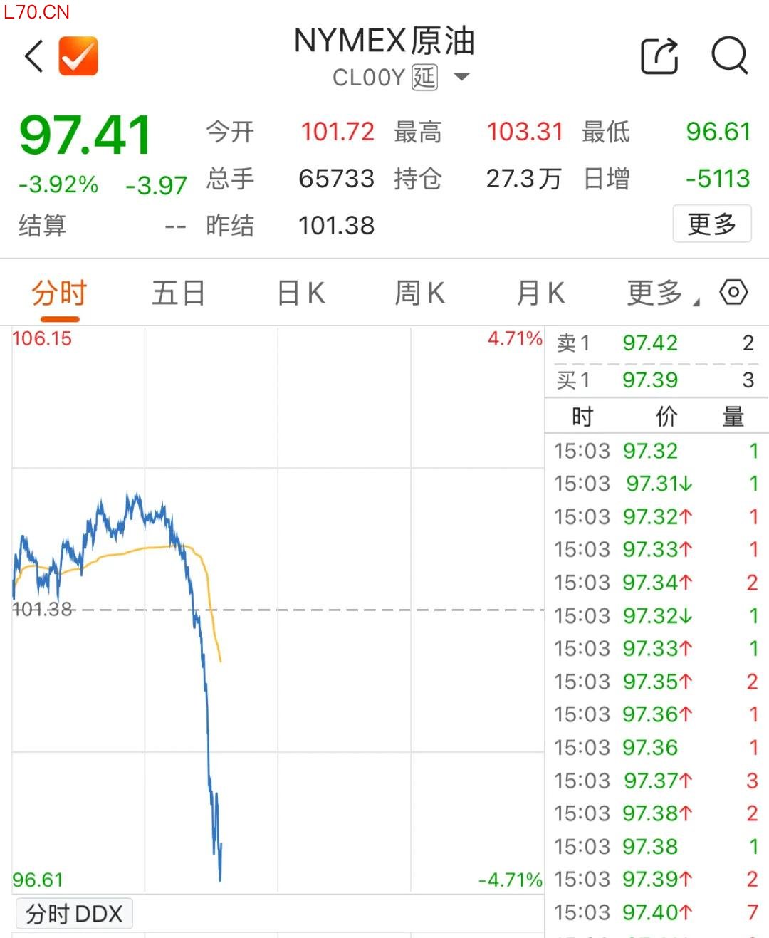 刚刚,国际油价大幅下跌。WTI原油、布伦特原油直线跳水杠杆配资,WTI原油一度跌超4%,布伦特原油一度跌超5%。