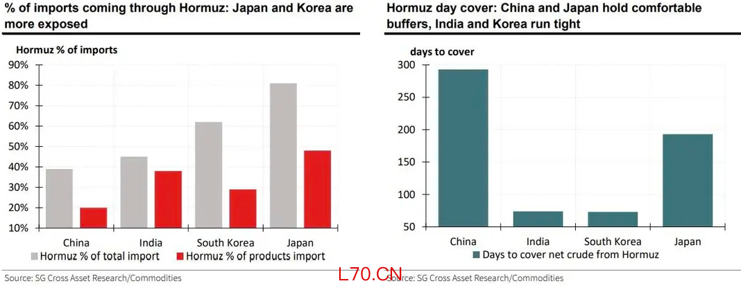 当然,若进一步审视受霍尔木兹海峡石油流量影响的买家名单,包括菲律宾、缅甸和越南在内的数个东南亚国家缓冲余地更为有限——仅能支撑20-40天。