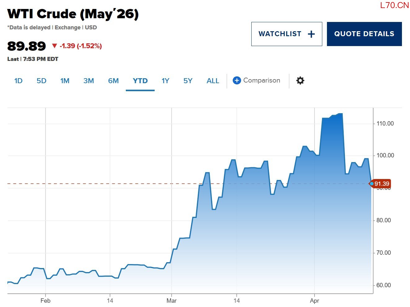 在白宫发出美伊可能举行第二轮和平谈判的信号后,油价大幅下跌。5月交割的美国原油期货跌幅接近8%,收于每桶91.28美元。6月交割的国际基准布伦特原油跌幅超过4%,收于每桶94.79美元。