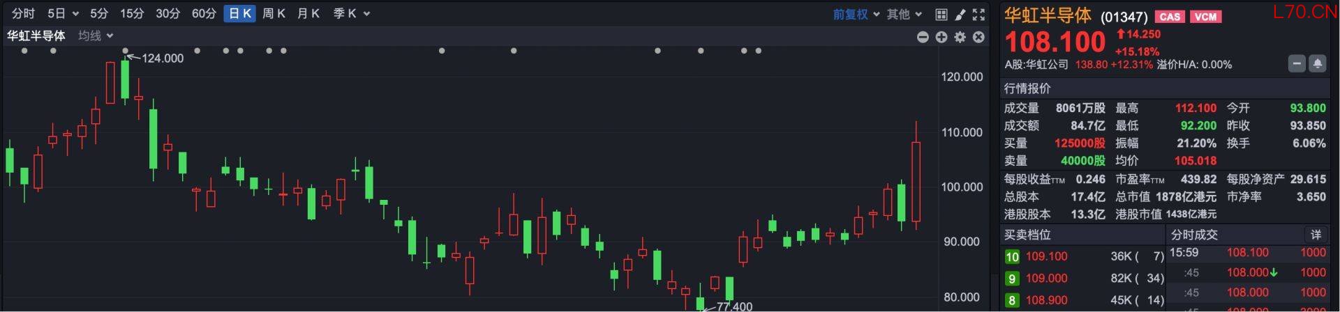 尽管热门股整体调整,但恒生指数和恒生科技指数最终均以红盘报收。从成分股来看,主要是芯片股走强对指数影响较大。其中,表现最好的是华虹半导体(HK01347),今日涨超15%,另外中芯国际也涨超10%。