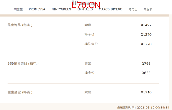 受此影响,国内金饰价格也大幅下跌。中新经纬19日查询发现,周生生金饰1492元/克,单日跌55元;相较3月3日月内高点跌158元。老庙黄金金饰1507元/克,单日下跌43元,相较月内高点跌135元;老凤祥为1498元/克,单日跌42元,相较月内高点跌144元。