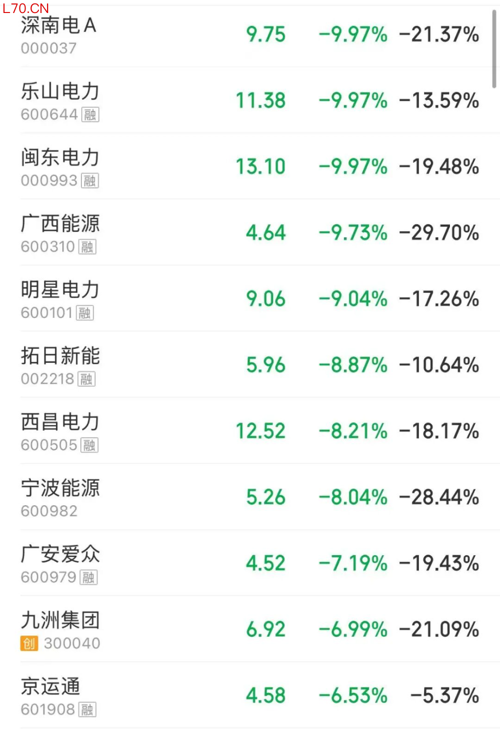 电力股集体下挫,乐山电力、闽东电力触及跌停。