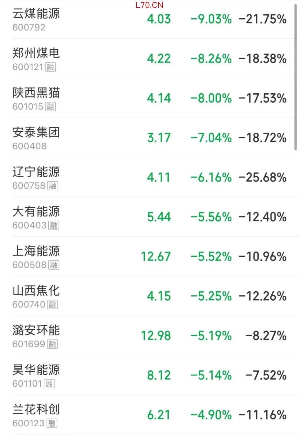 下跌方面,煤炭板块调整,云煤能源接近跌停。